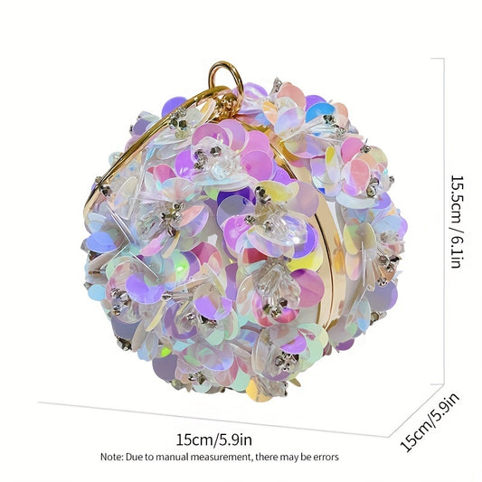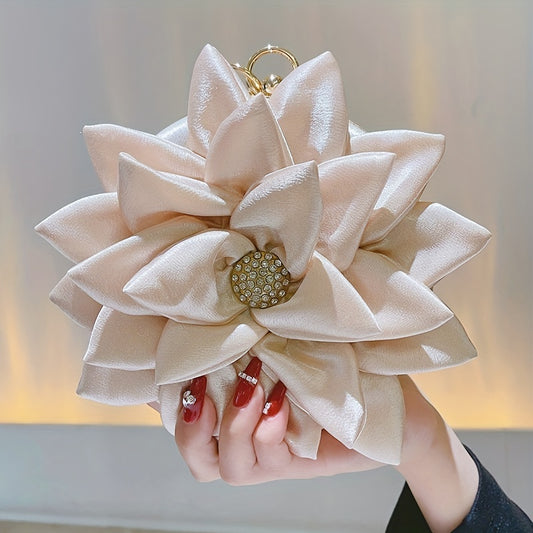 3D Flower Satin Clutch with Glitter Top Ring for Weddings and Parties